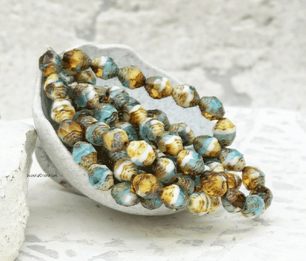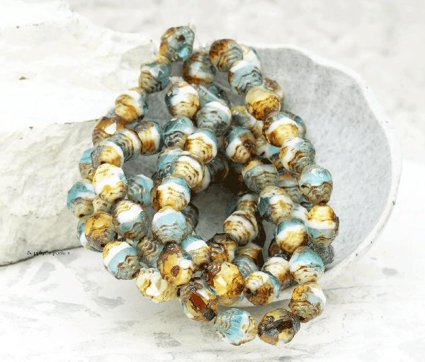 8x6mm Sky Blue Yellow White Picasso Czech Cathedral – 15 pieces – 4526R