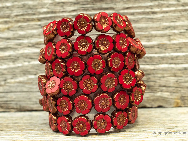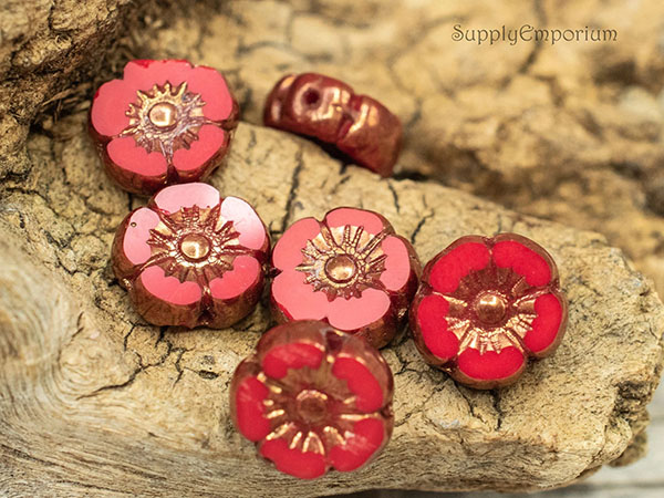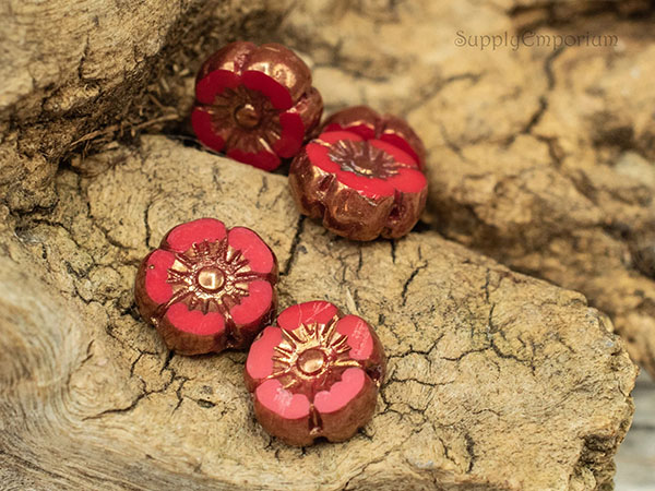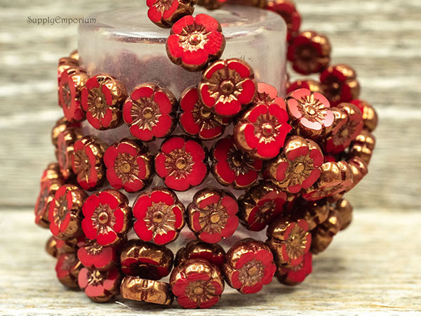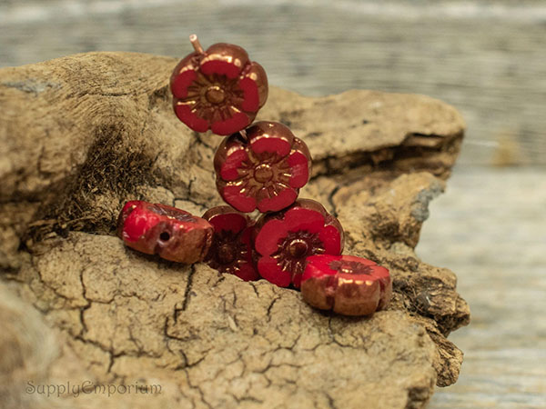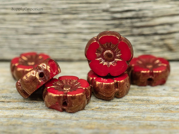 9mm Bronze Wash Red Czech Flower – 12 Pieces – 7224W