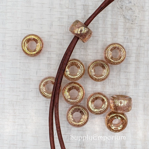 9mm Luster Trans Topaz/Pink Czech Roller Bead – 24 Pieces – 6277RO
