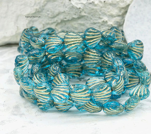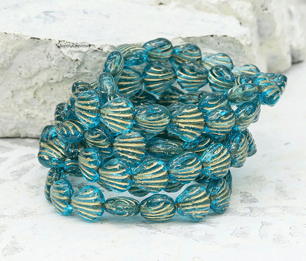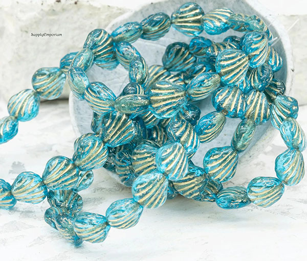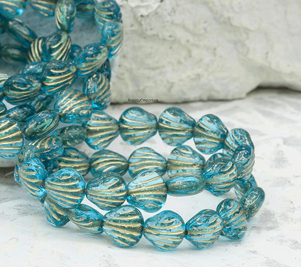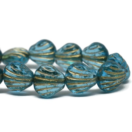 9mm Sky Blue Gold Wash Czech Carved Shell – 15 pieces – 2856R
