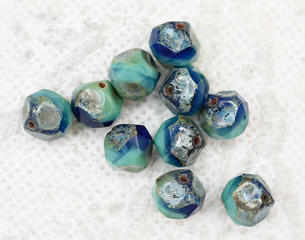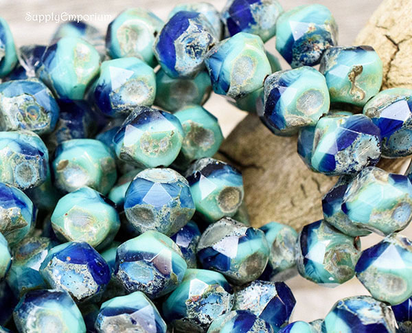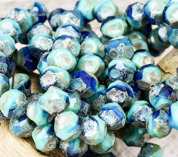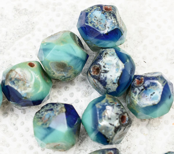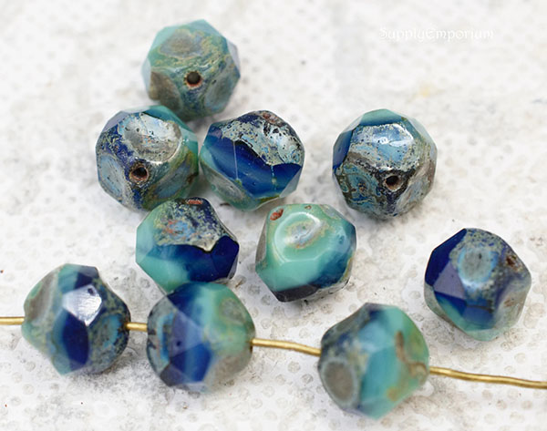 9mm Turquoise Cobalt Picasso Czech Central Cut Baroque – 15 pieces – 4147RR