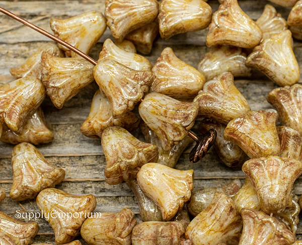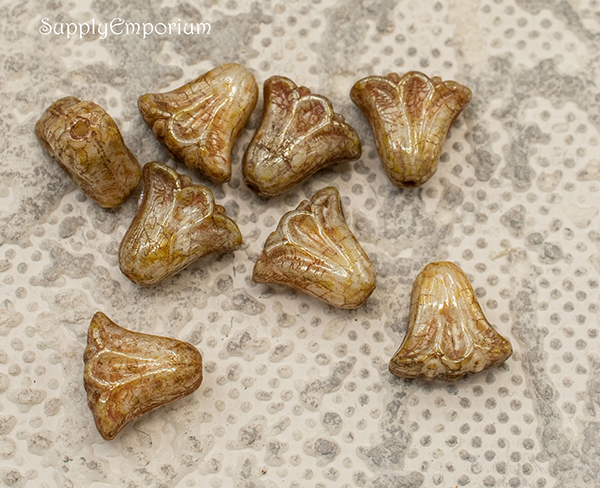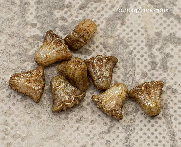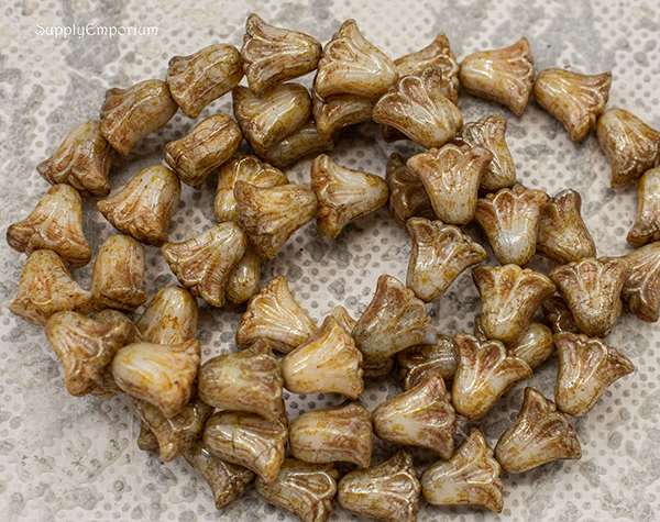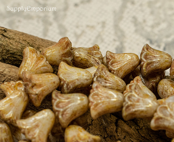 9x10mm Ivory Beige Op Picasso Luster Czech Lily Flower – 15 pieces – 7117W