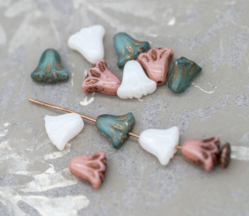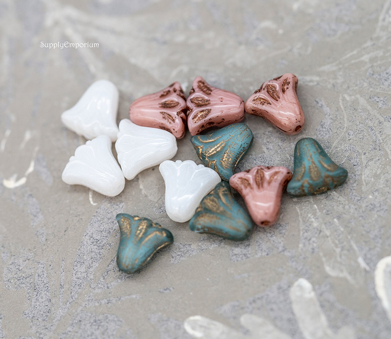 9x10mm Lilies In the Snow Czech Lily Flower Mix – 12 Pieces – MIX182