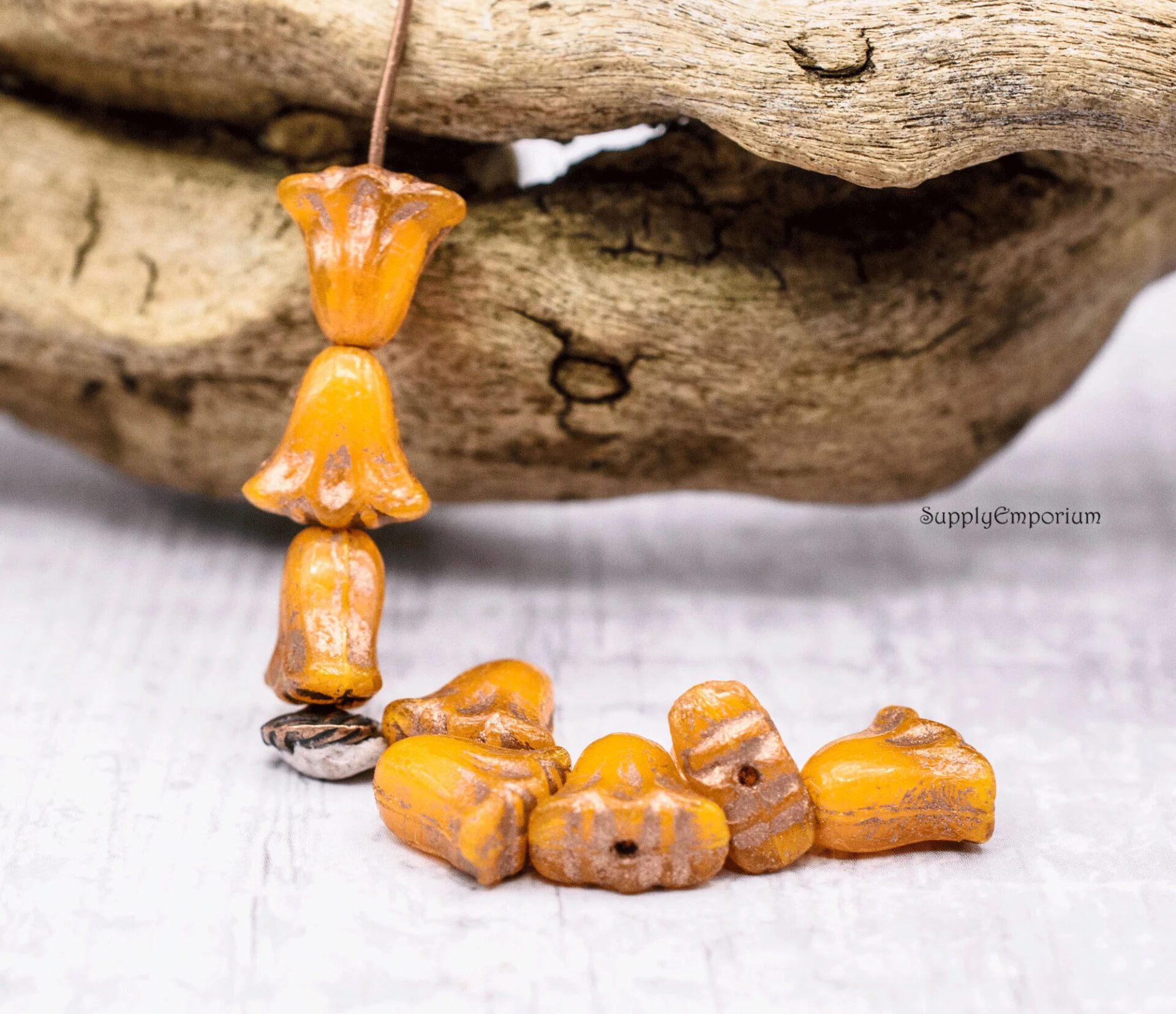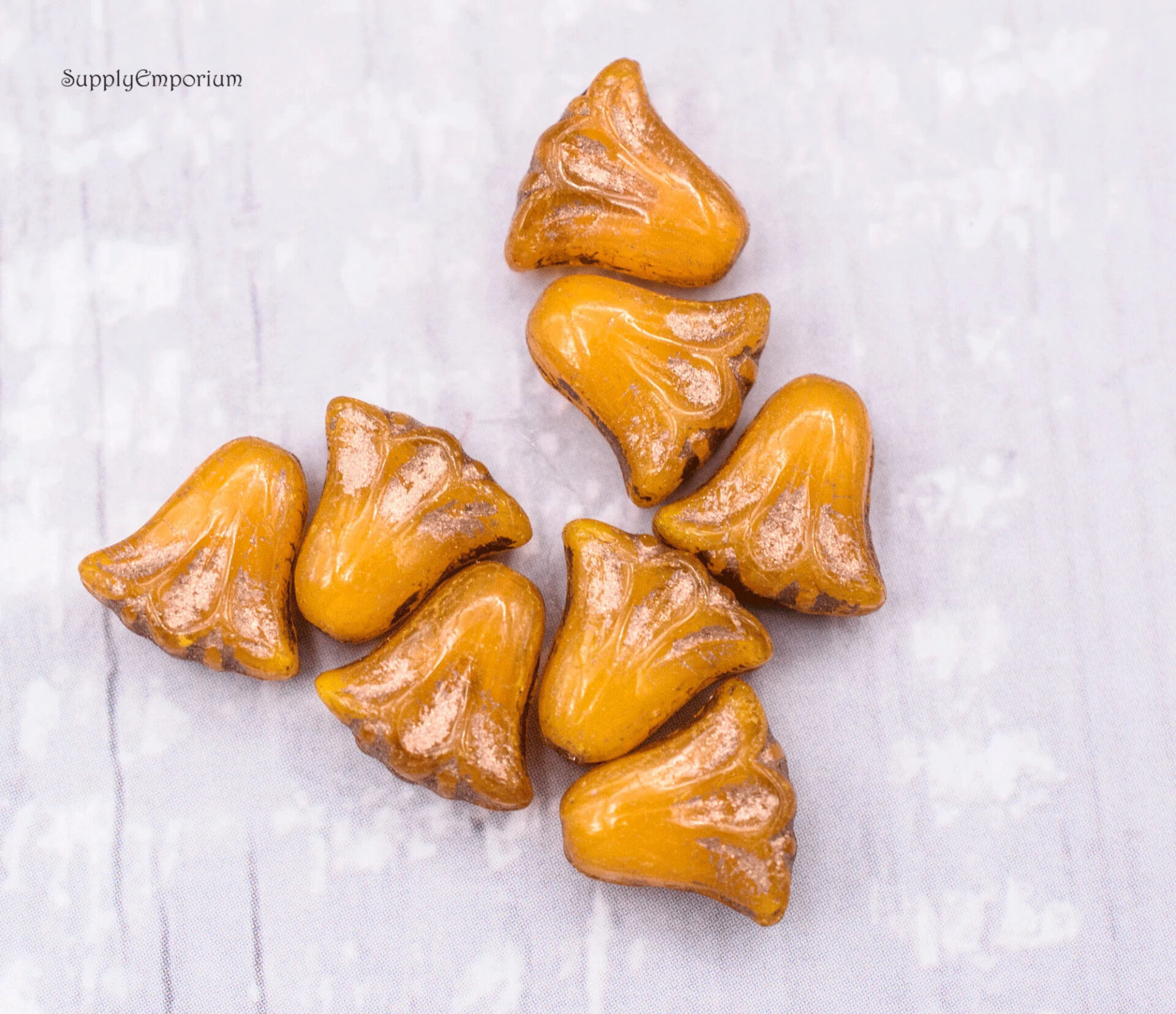 9x10mm Orange Opaline Bronze Czech Lily Flower – 15 Pieces – 7116W