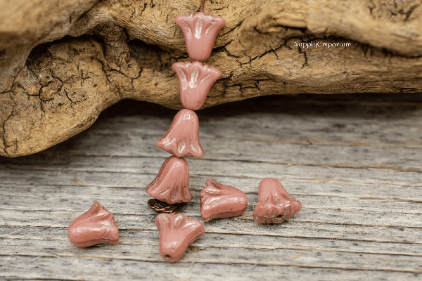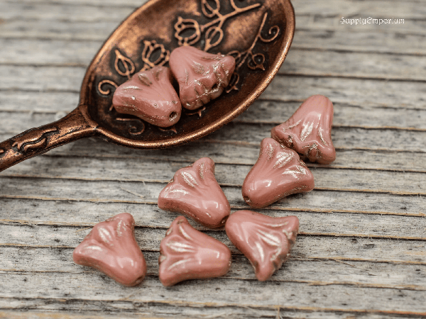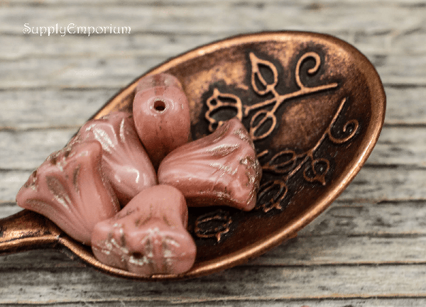 9x10mm Pink Silk w/Platinum Wash Czech Lily Flower – 8 pieces – 7194