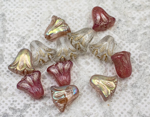 9x10mm Withering Roses Czech Lily Flower Mix – 12 Pieces – MIX159