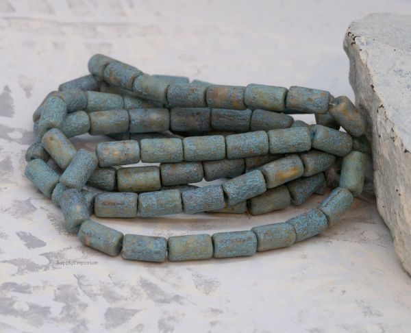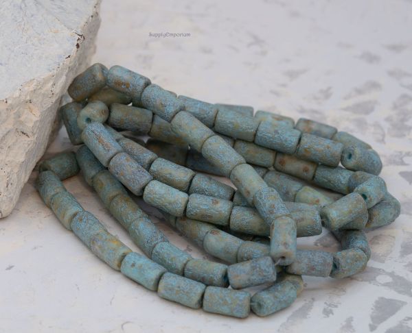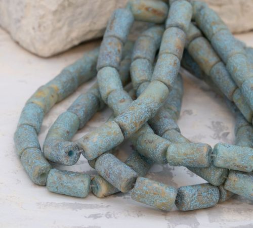 9x5mm Etch Honey Picasso Turquoise Wash Czech Tube – 16 pieces – 2494RE