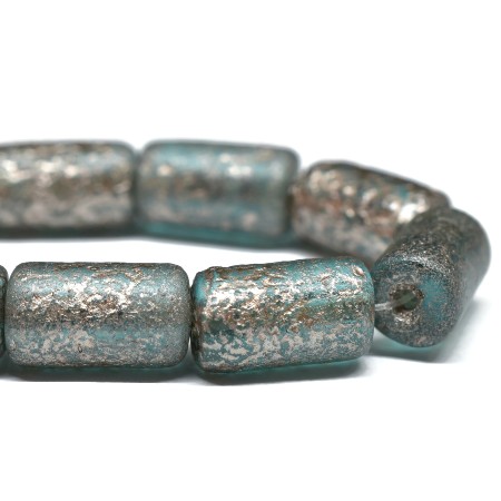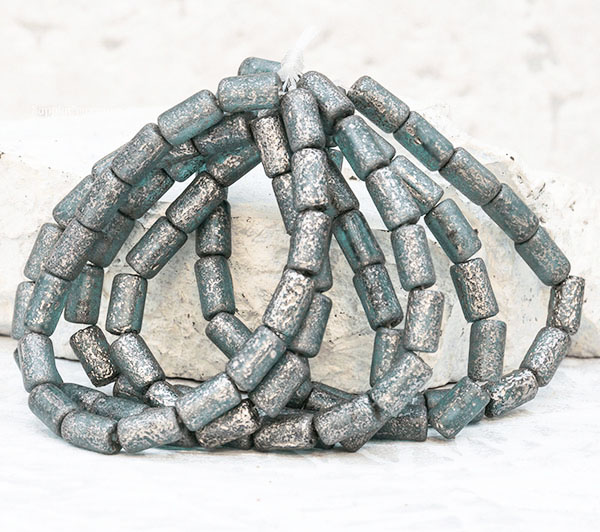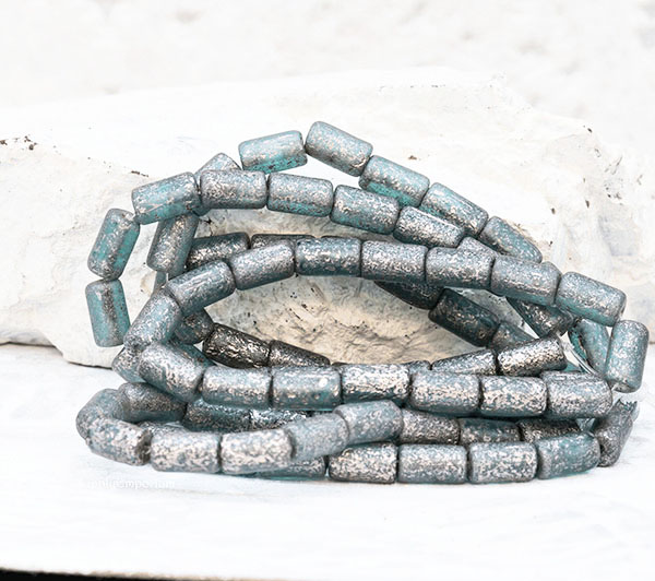 9x5mm Etch Sky Blue Silver Wash Czech Tube – 16 pieces – 3603R