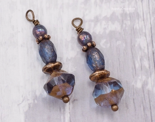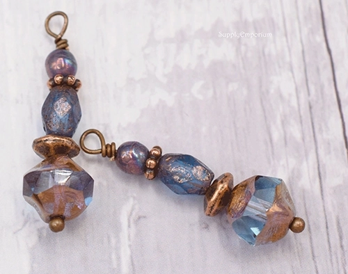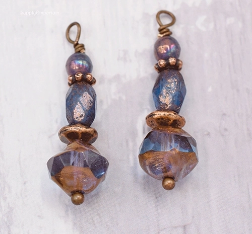 Antique Copper Wire Wrapped Czech Glass Drop Charms. WW60 (2 charms)