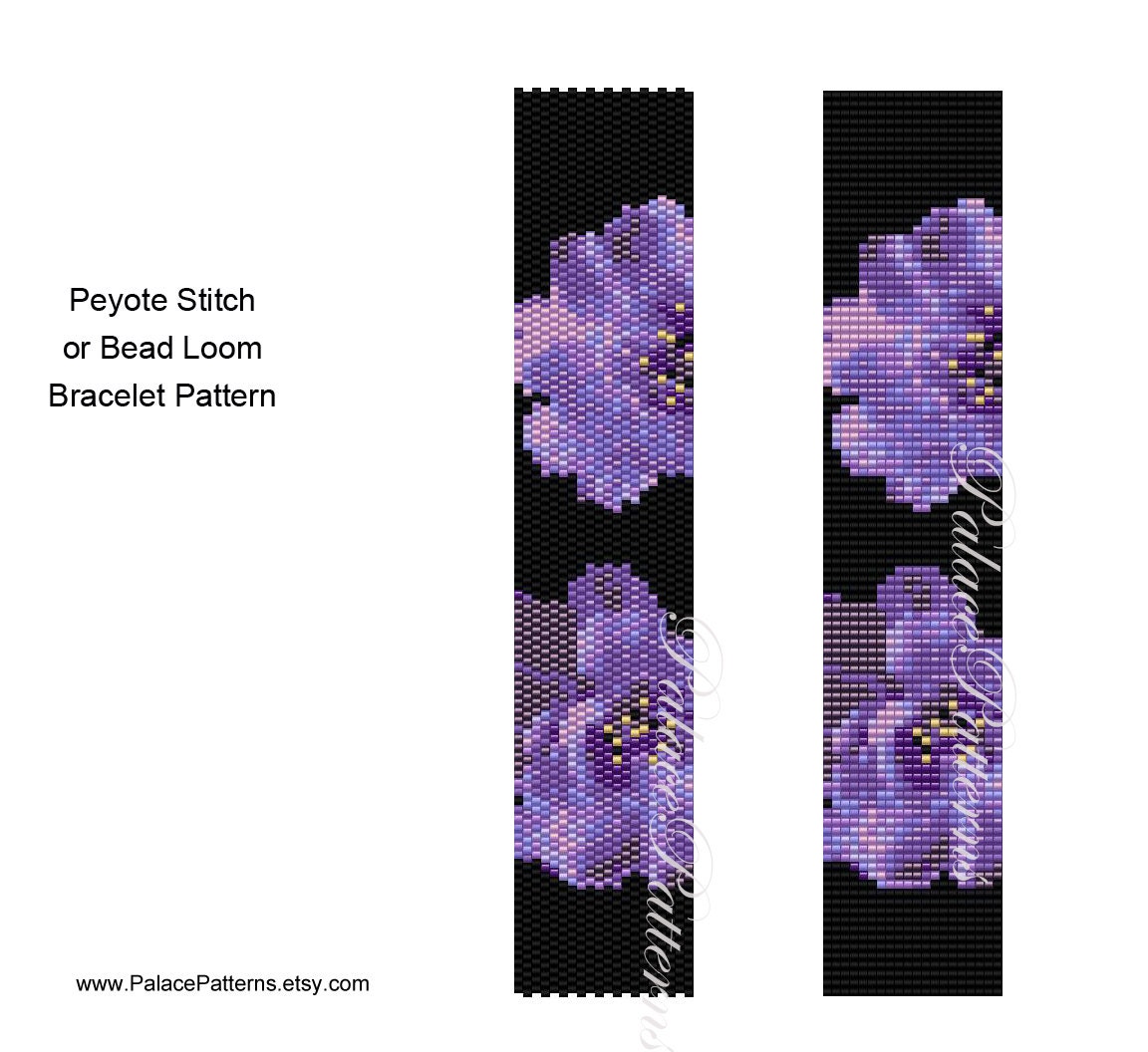 Bead Loom and Peyote Stitch Bracelet Bead Weaving Pattern – Lavender Flowers on Black