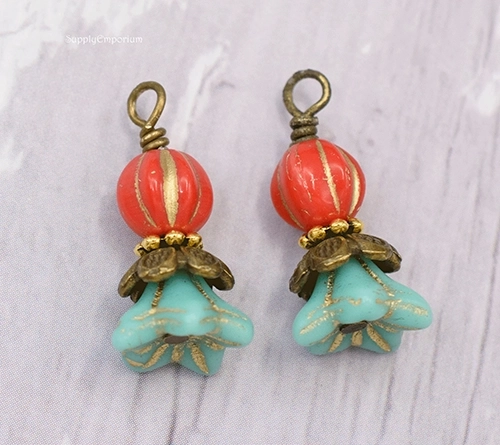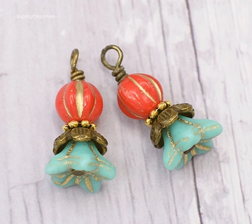 Earring Beads. Wire Wrapped Czech Glass Bead Charms