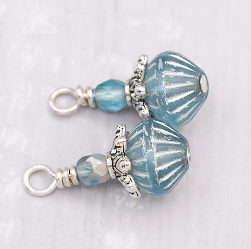 Earring Beads. Wire Wrapped Czech Glass Bead Charms