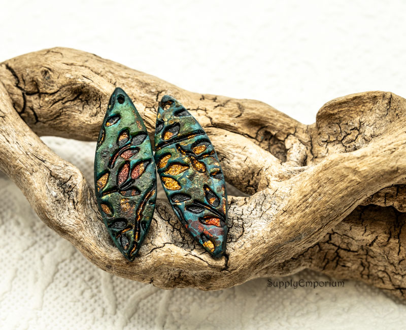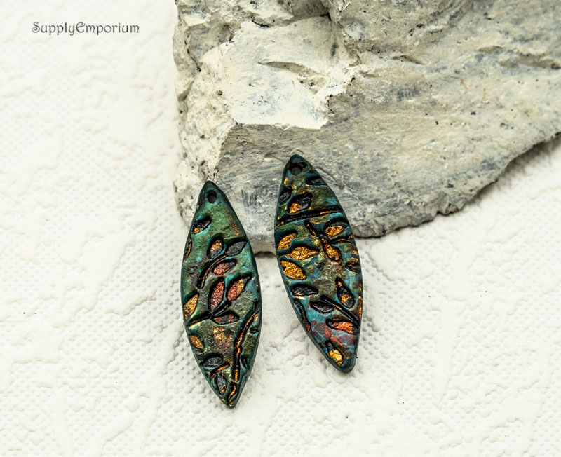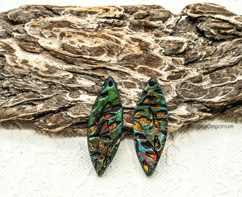 Earthy Polymer Clay Earring Charms, 41x14mm, 2 pieces, CLAY 3256