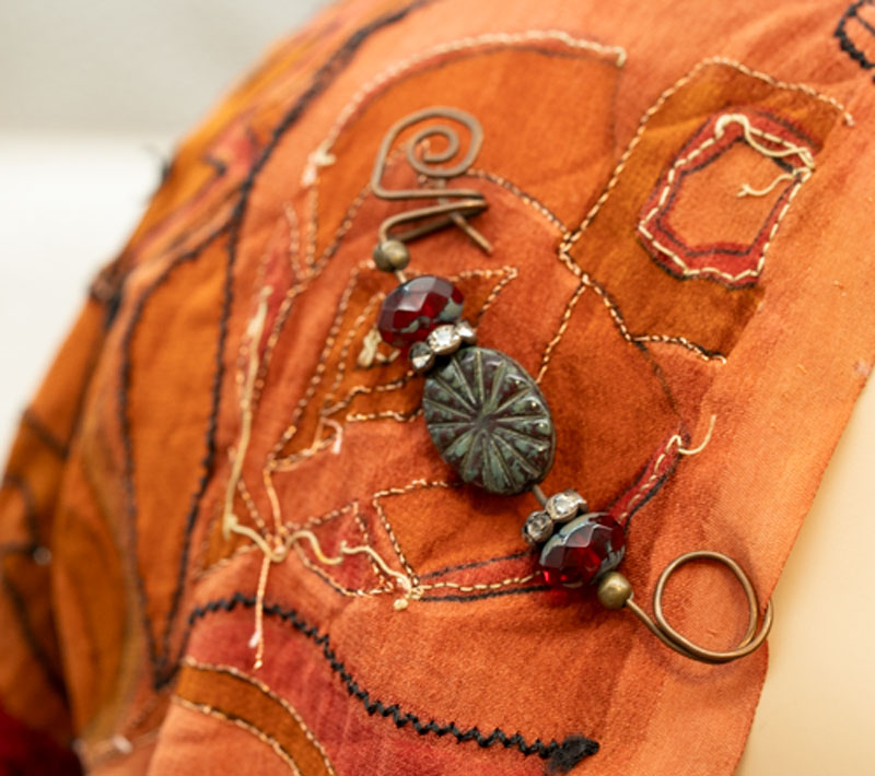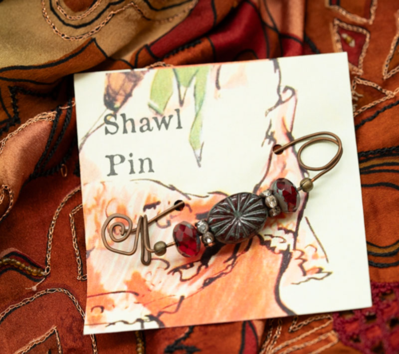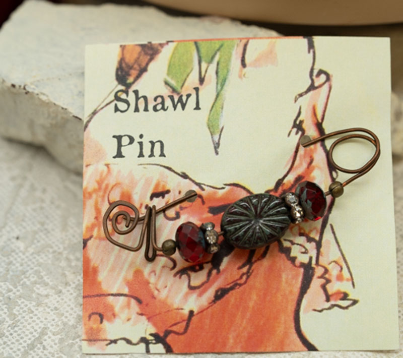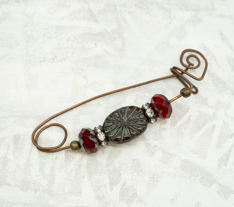 Handmade Copper Wire Shawl Pin with Rhinestones and Czech Glass Beads – Scarf Pin – 1 Piece – SP4