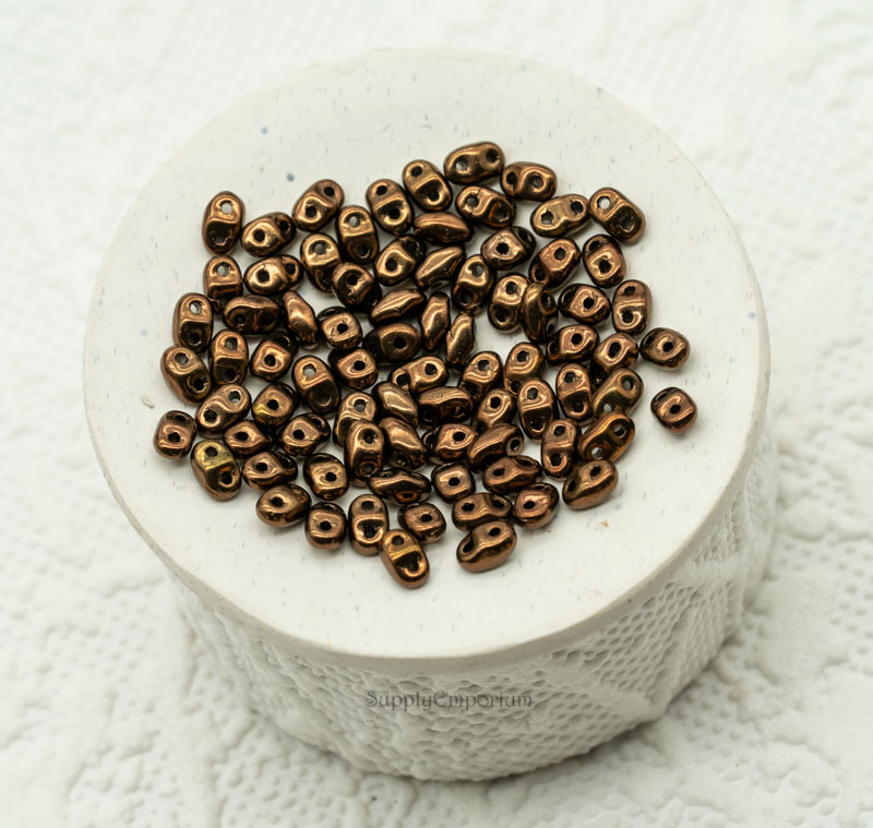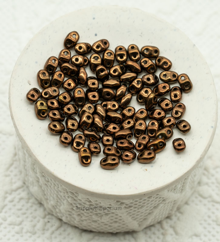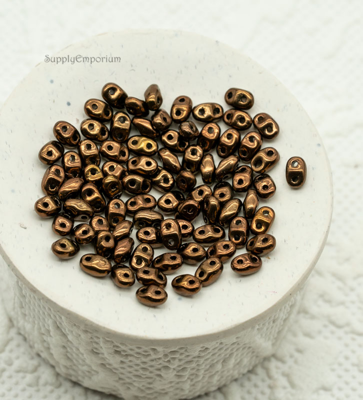 Jet Bronze Czech MiniDuo, 2x4mm 2-Hole Bead by Matubo – 10 grams – 2099