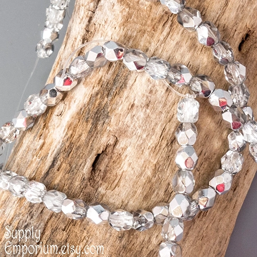 NEED PIC 4mm Silver Czech Fire Polish Round – 50 pieces – 321