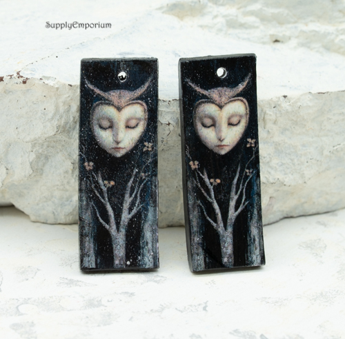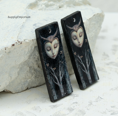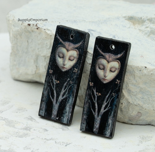 Owl Woman Fantasy Polymer Clay Earring Charms, 2 pieces, 38x14mm, CLAY 5370