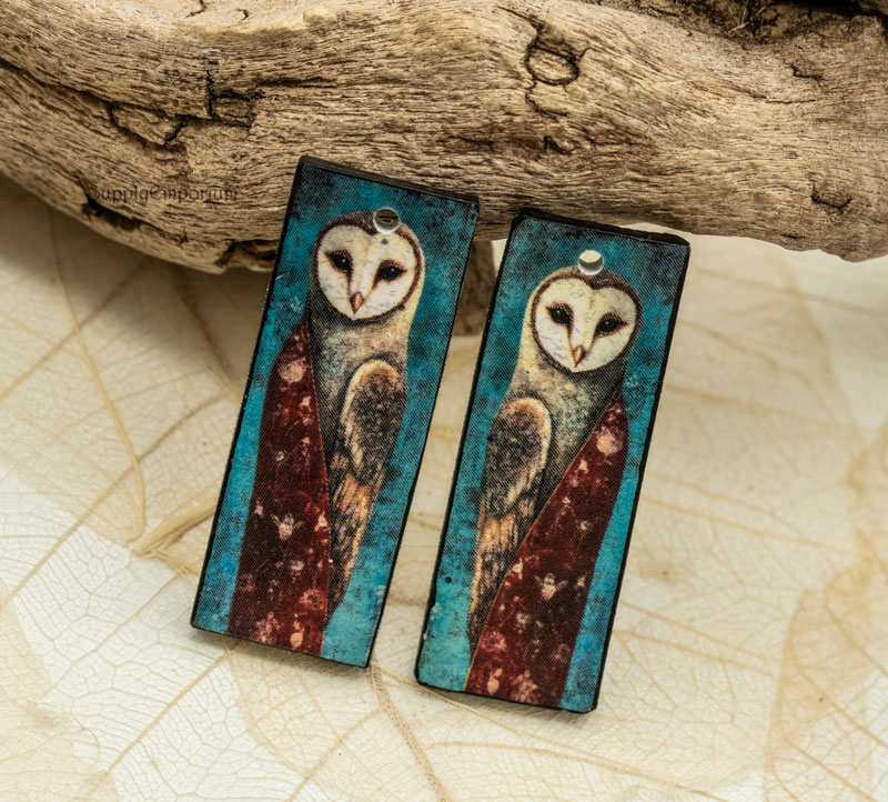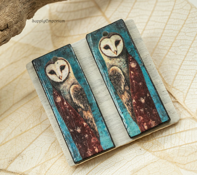 Owl Woman Fantasy Polymer Clay Earring Charms, 2 pieces, 38x14mm, CLAY 5414