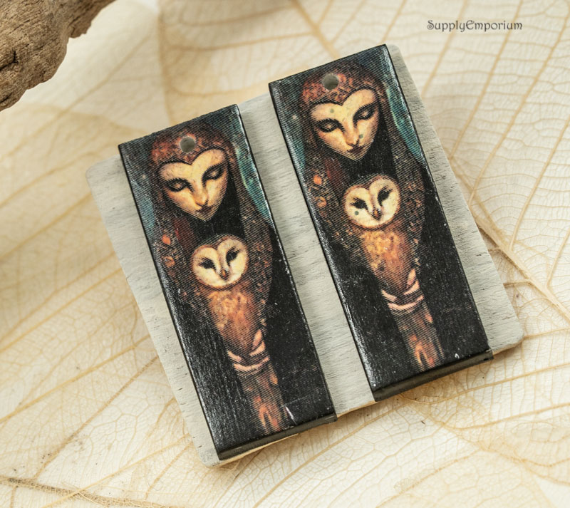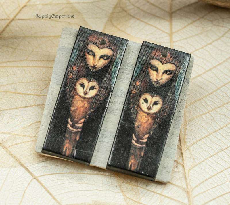 Owl Woman Fantasy Polymer Clay Earring Charms, 2 pieces, 38x14mm, CLAY 5419