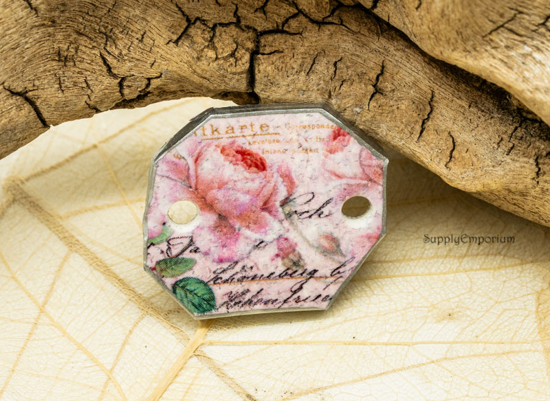 Polymer Clay 2 Hole Connector, Faux Ceramic Shard Connector, 29x26mm, 1 Piece, Clay 4057