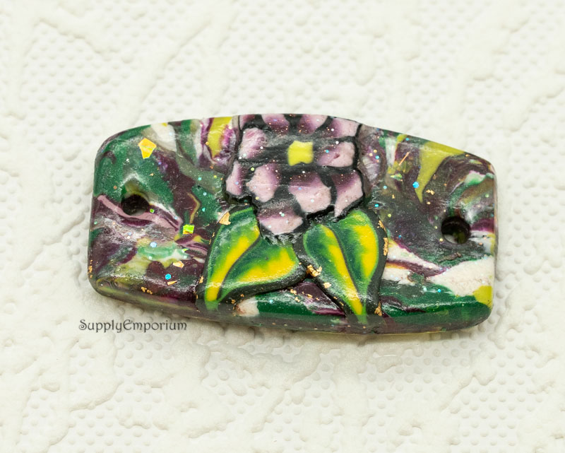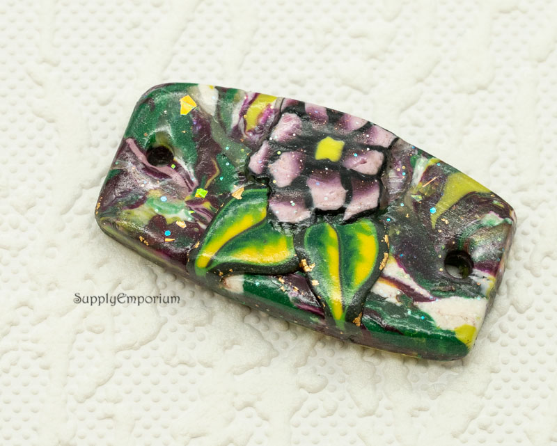 Polymer Clay 2 Hole Connector Pendant with Mokume Gane Technique. I added a flower made from one of my flower canes.