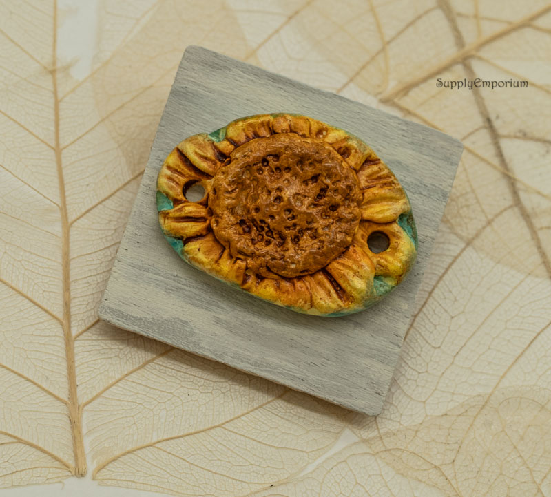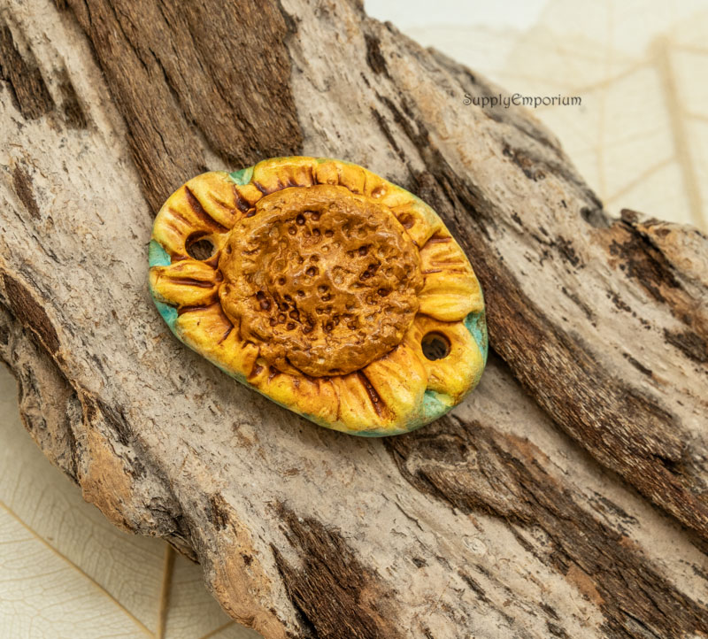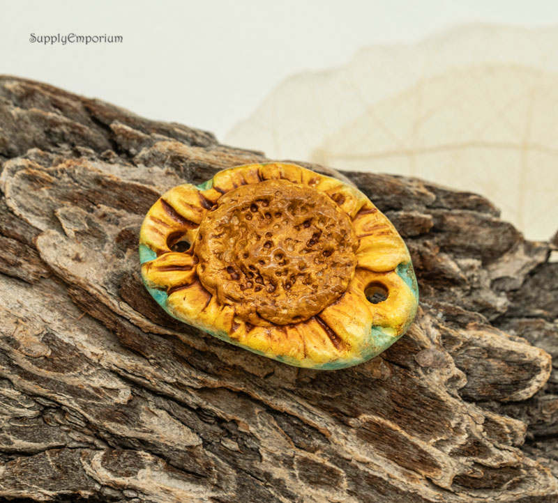 Polymer Clay 2 Hole Sunflower Connector, 1 Piece, 35x24mm, Clay 4697