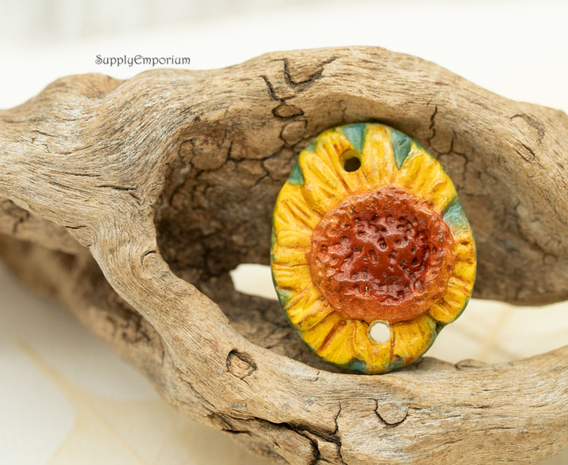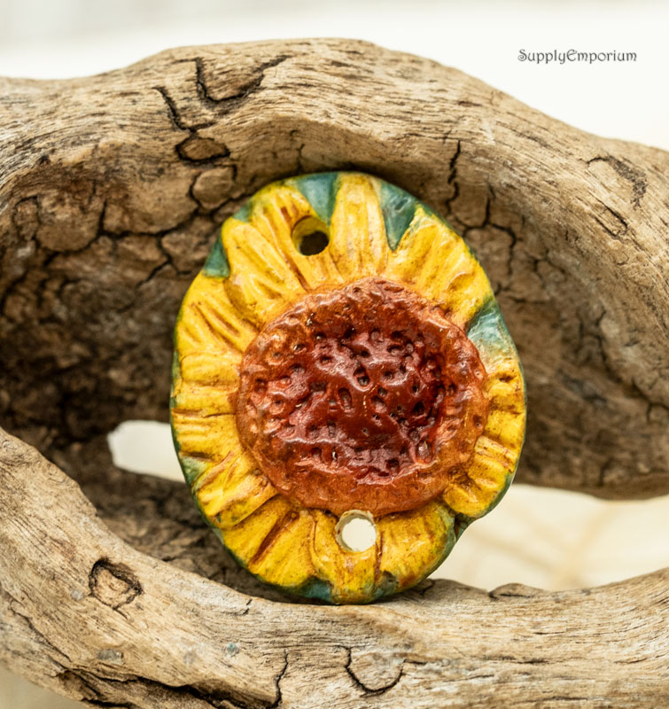 Polymer Clay 2 Hole Sunflower Connector, 1 Piece, Clay 4669
