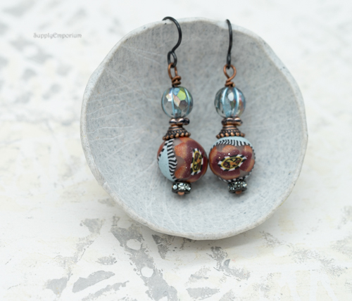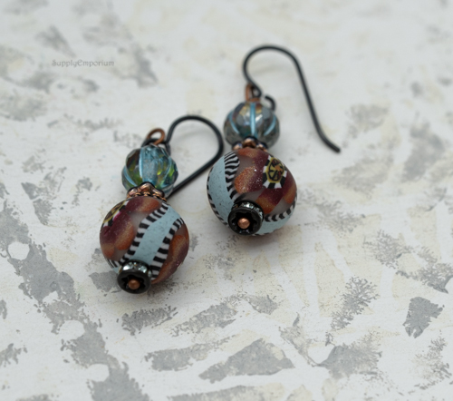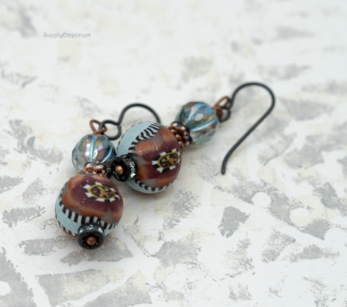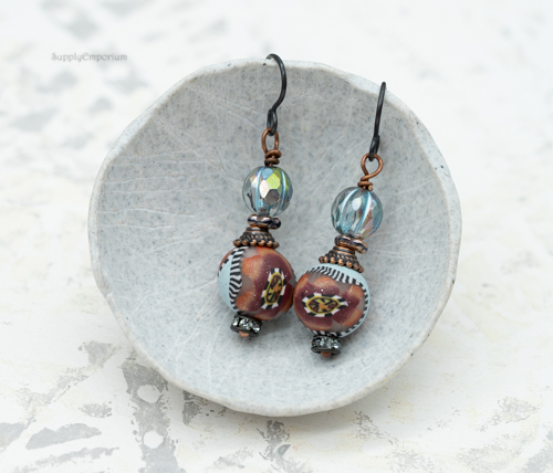 Polymer Clay Boho Teardrop Earrings, 1 Pair, 2″ Long, Clay 5403