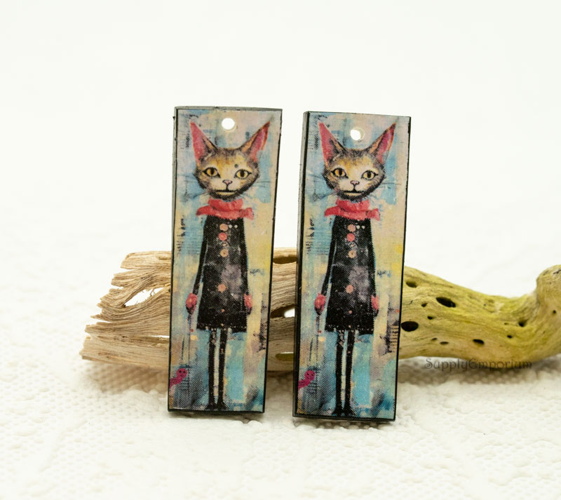 Polymer Clay Cat Earring Charms, Long Rectangle Charms, 2 Pieces, Clay 5452