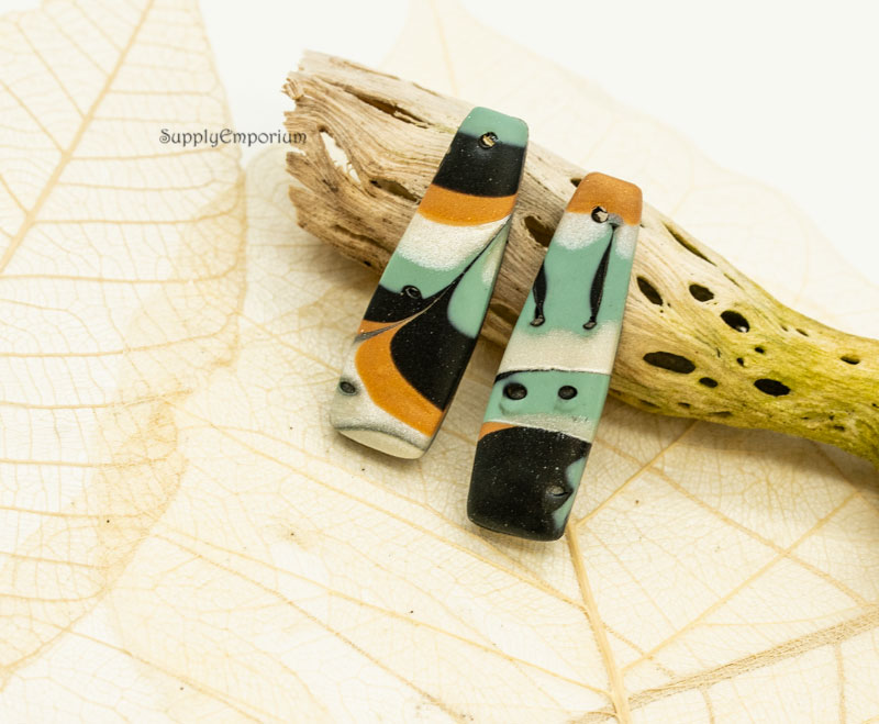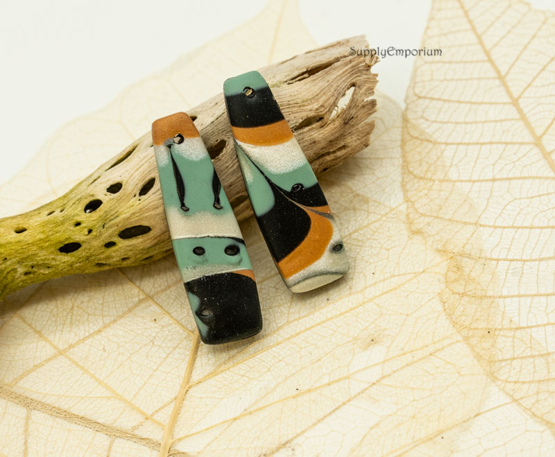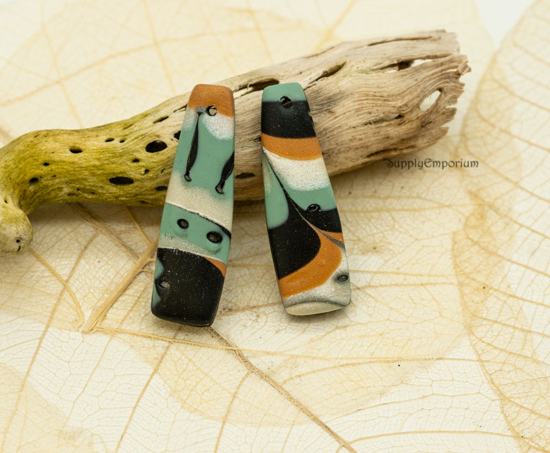 Polymer Clay Charms, 2 Pieces, 32x19mm Mokume Gane Earring Charms, CLAY 1433