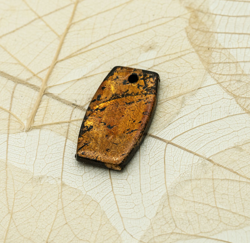 Made with foil on clay and colored. Lots of texture and shine