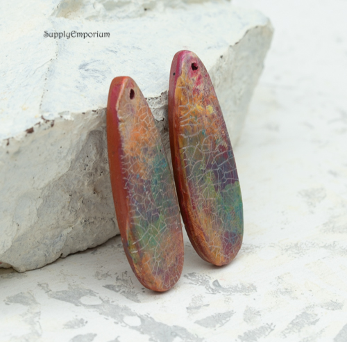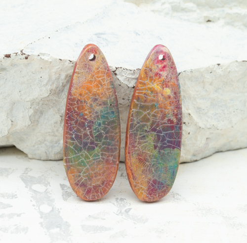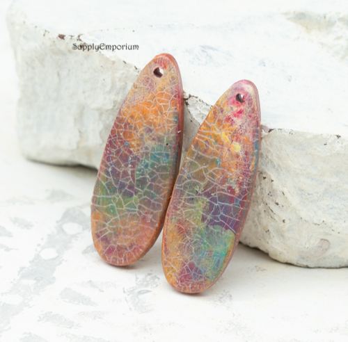 Polymer Clay Crackle Earring Charms, 2 pieces, 38x14mm, CLAY 5369