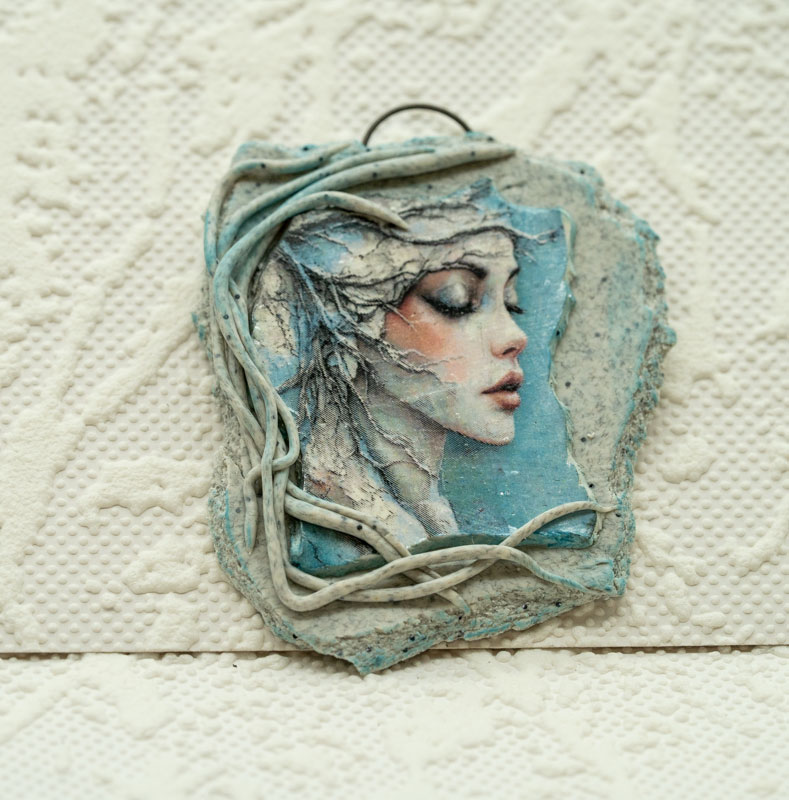I transferred this awesome image to clay and made a base for the baked piece. I made 3D vines and and painted it to be as realistic as possible, coordinating with the image.