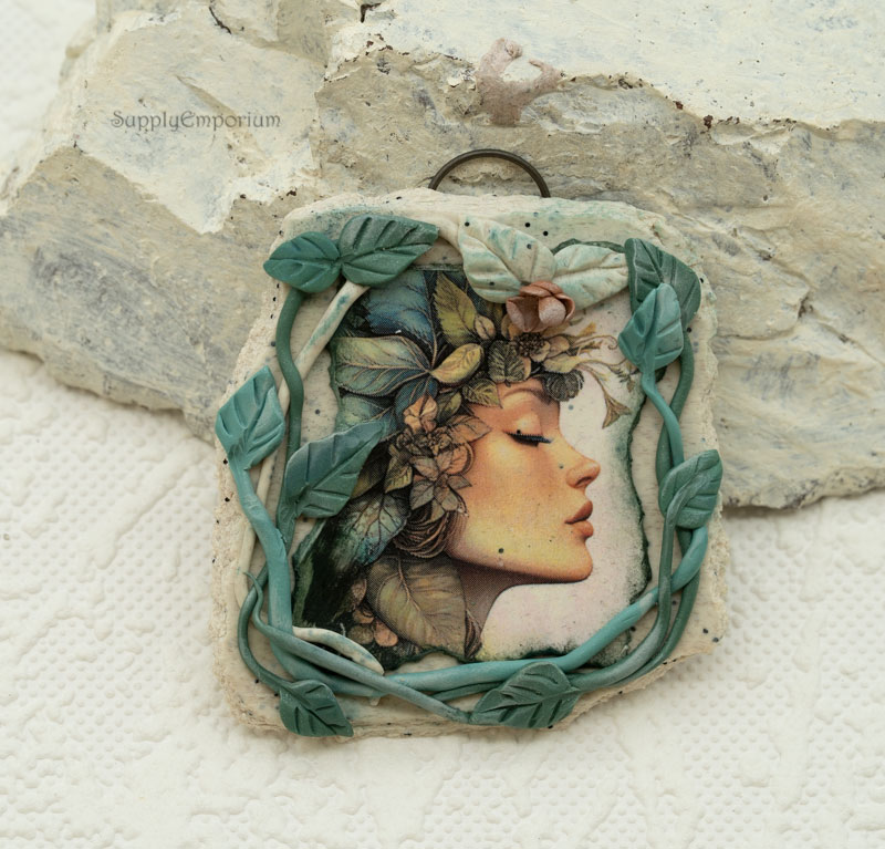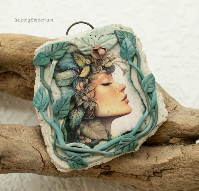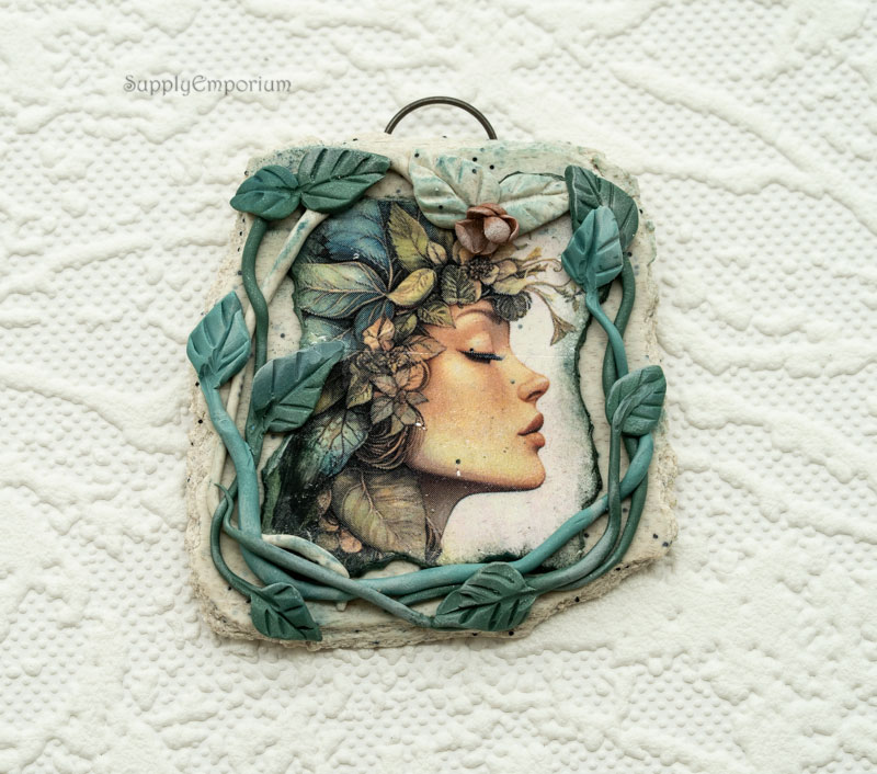 I transferred this awesome image to clay and made a base for the baked piece. I made 3D vines and and painted it to be as realistic as possible, coordinating with the image.