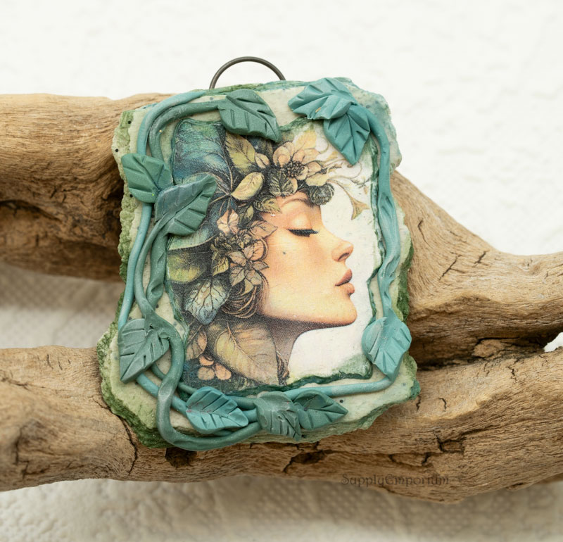 I transferred this awesome image to clay and made a base for the baked piece. I made 3D vines and and painted it to be as realistic as possible, coordinating with the image.
