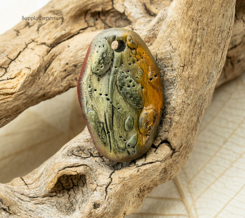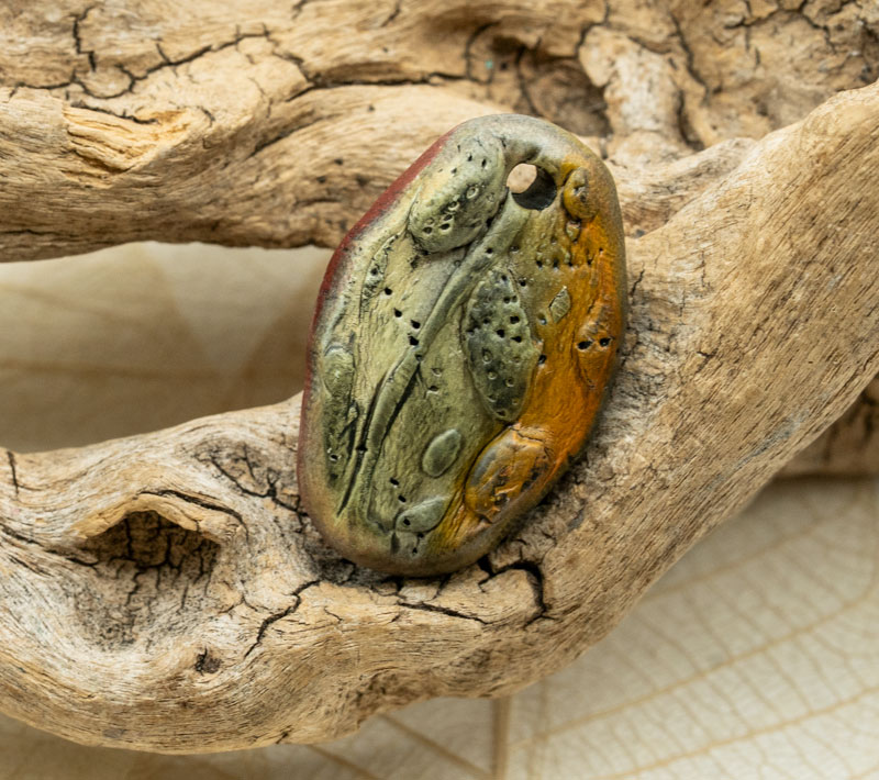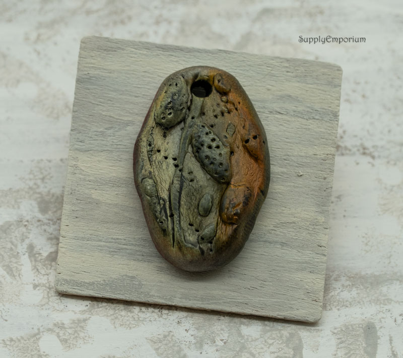 Polymer Clay Pendant Connector. Stamped, raised flower buds from a handmade stamp I created