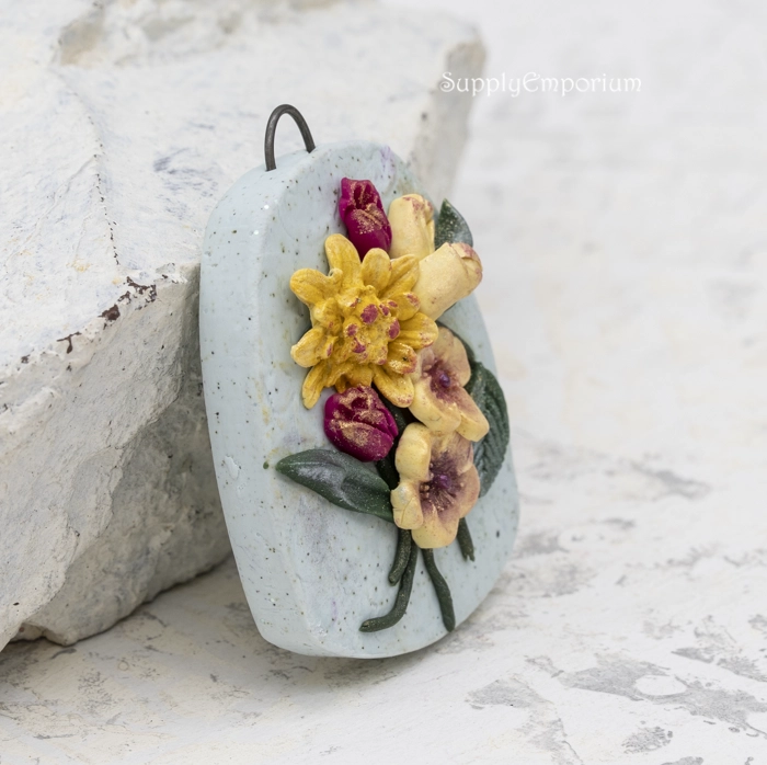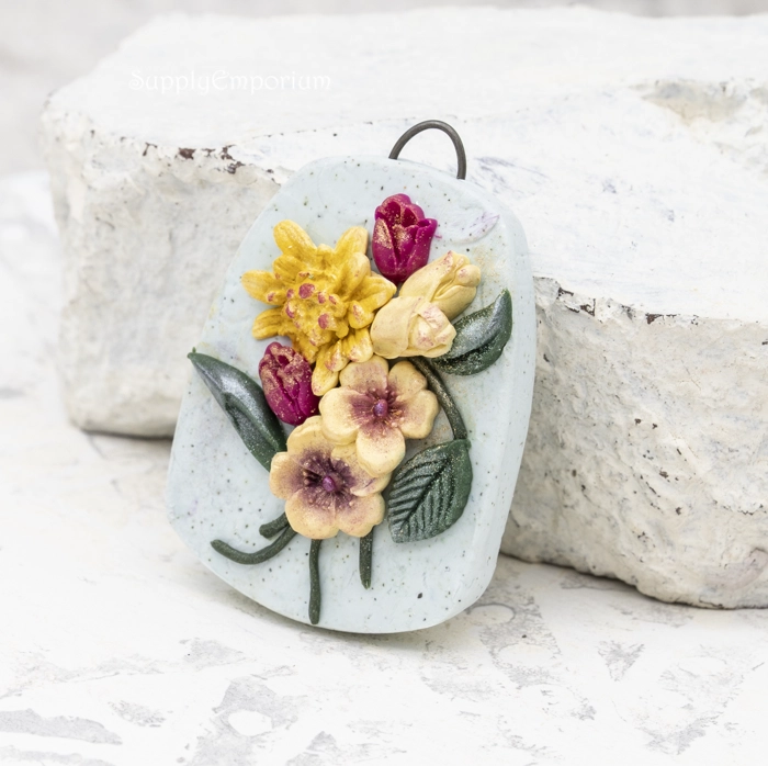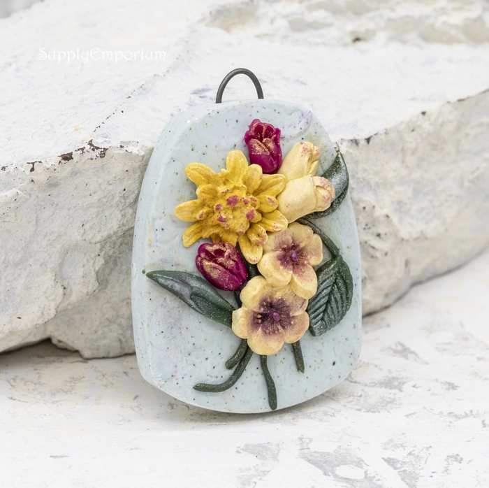 Polymer Clay Flower Bouquet Pendant, realistically handpainted with 3D