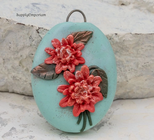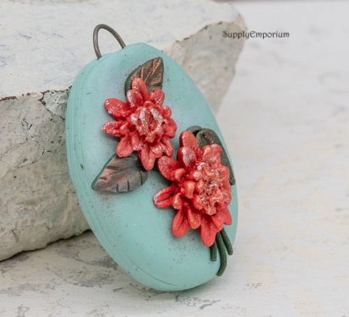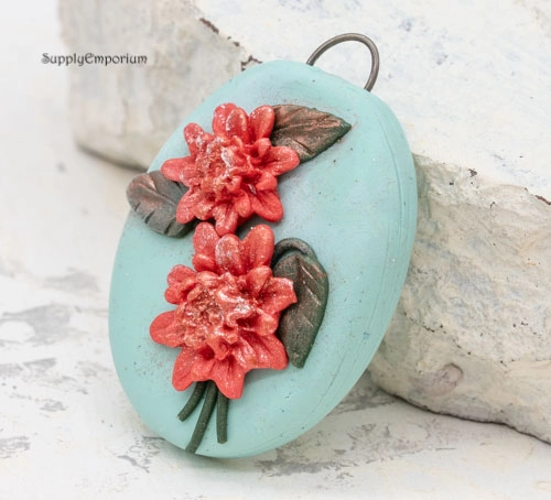 Polymer Clay Flower Bouquet Pendant, realistically hand painted with 3D flowers