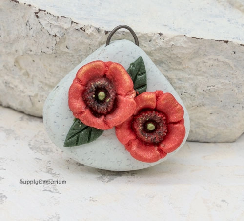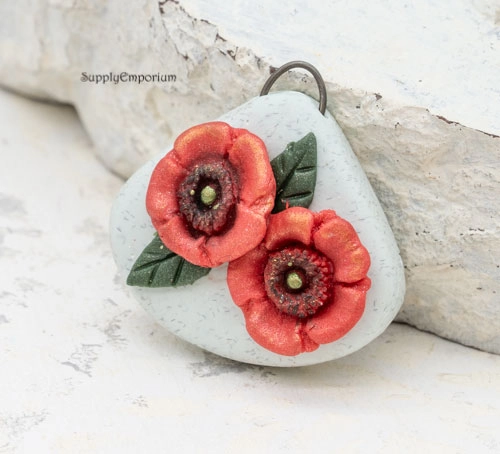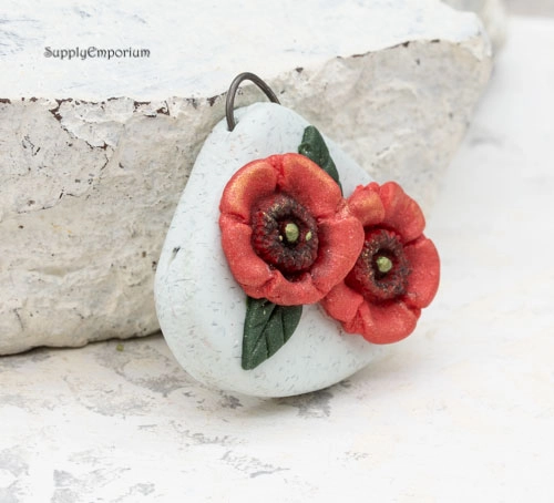 Polymer Clay Flower Bouquet Pendant, realistically handpainted with 3D
