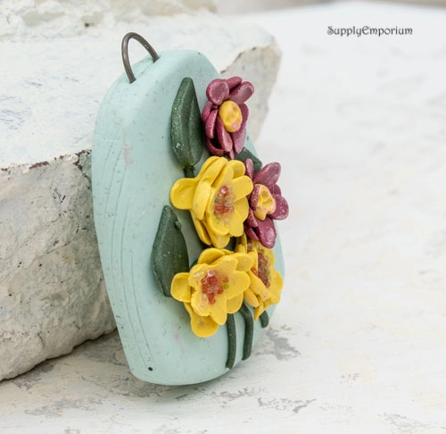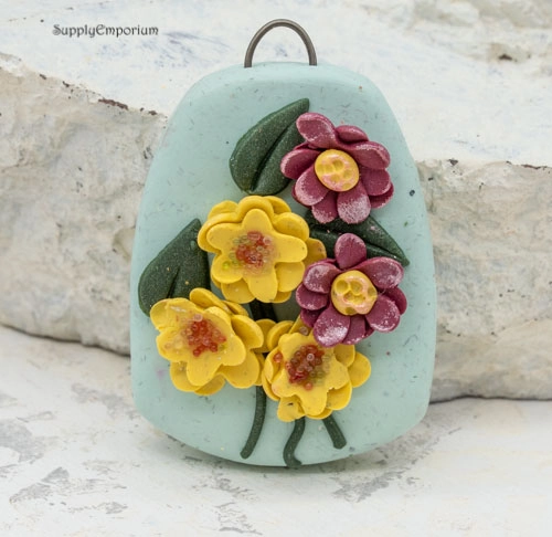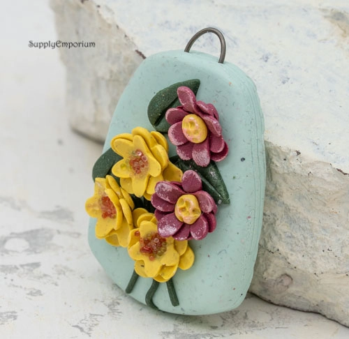 Polymer Clay Flower Bouquet Pendant, realistically handpainted with 3D