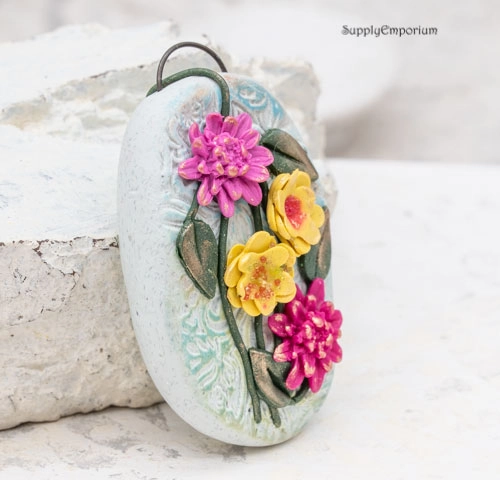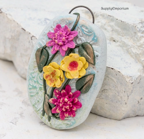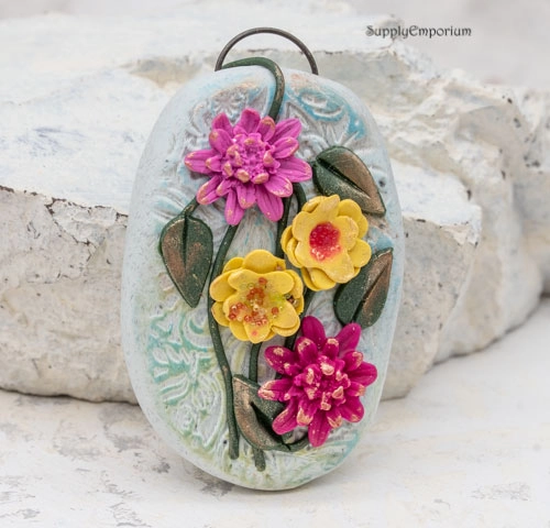 Polymer Clay Flower Bouquet Pendant, realistically hand painted with 3D flowers