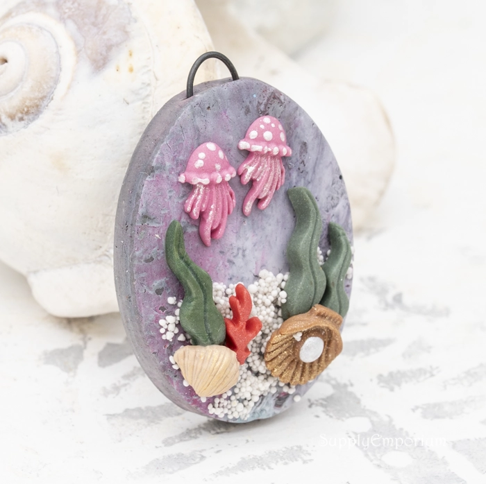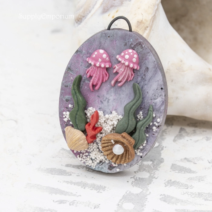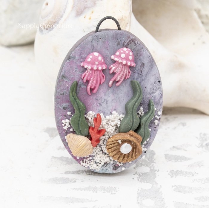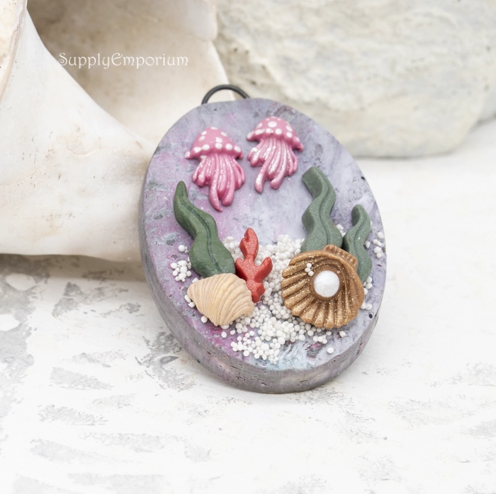 Polymer Clay Beach Theme Pendant, realistically handpainted with 3D