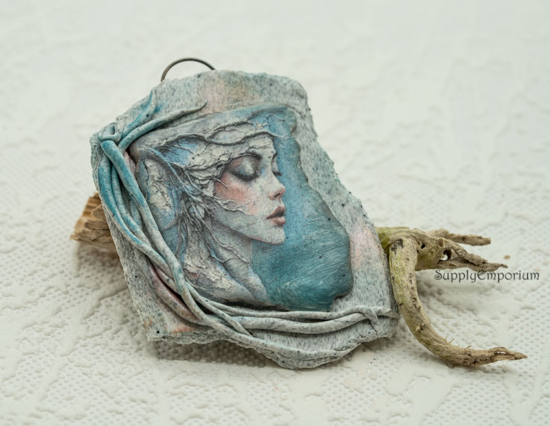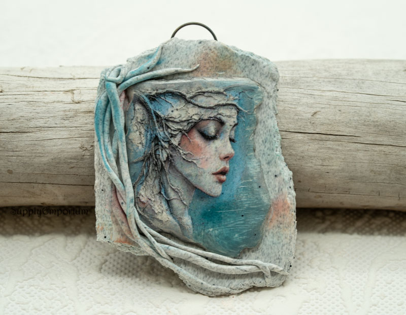 Purchased image of a lady I transferred to clay. I textured a ‘frame’ for the awesome face and added 3D details to mimic the image. Back is nicely finished.