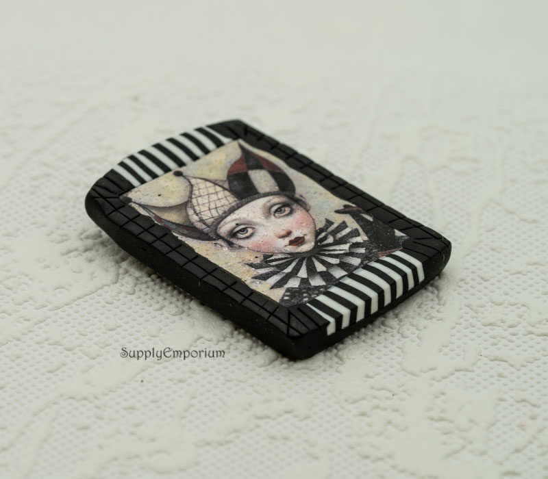 Wearable Art Polymer Clay Large Jester Face Pendant, 1 Piece, 51x36mm, CLAY 5437