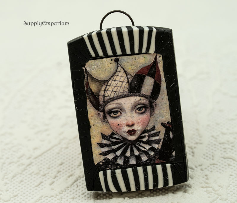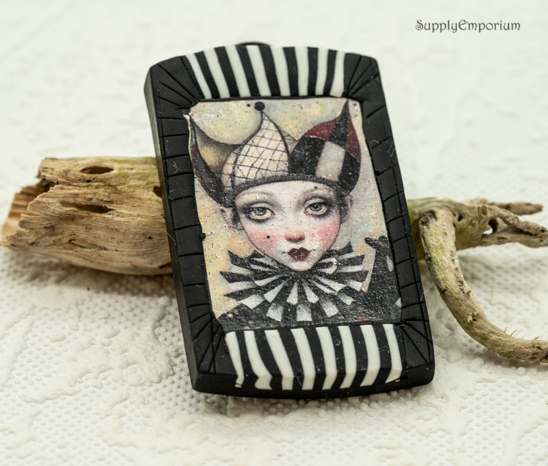 Wearable Art Polymer Clay Large Jester Face Pendant, 1 Piece, 56x35mm, CLAY 5435