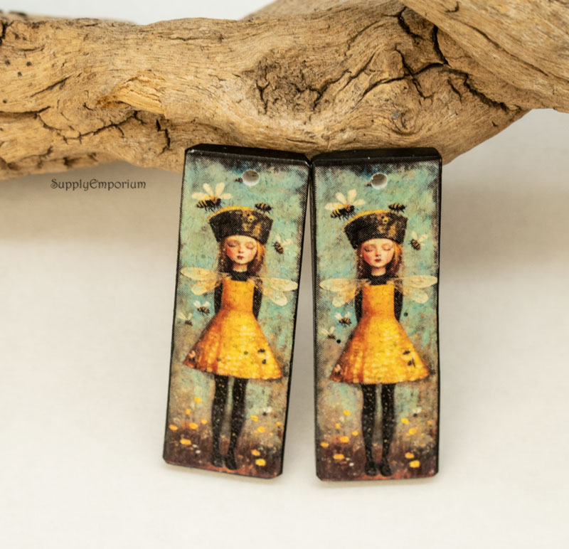 Whimsical Bee Polymer Clay Earring Charms, 2 pieces, 38x14mm, Made To Order, CLAY 5418