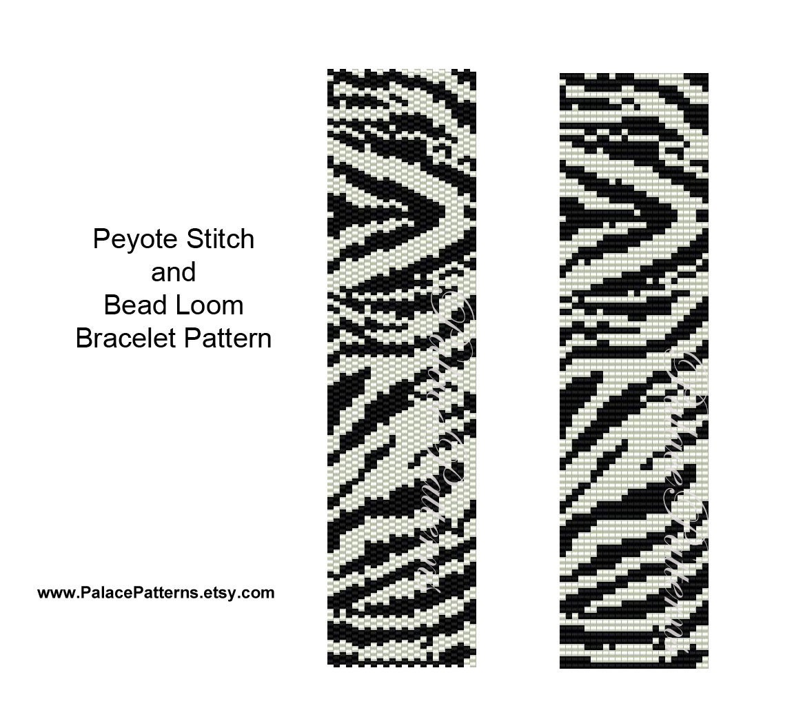 Zebra Stripes Bracelet Pattern for Peyote Stitch or Bead Loom – Black and White Peyote Stitch Bracelet Pattern – Zebra Bead Loom Pattern