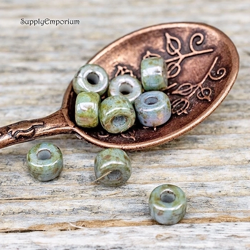 Added to your favorites.Add to cart 3X5mm Tea Green and White AB w/Antique Silver Czech Rondelle – 30 Pieces – 4446RA$4.25